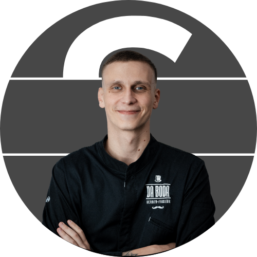 Giuseppe, stolz auf seine Wurzeln in der malerischen Stadt Villa Castelli in Italien, hat seine Leidenschaft für das Friseurhandwerk seit 2005 zelebriert. Seit 2017 trägt er als Inhaber von Da Boda die Verantwortung für einen Ort, an dem Handwerkskunst und Gastfreundschaft Hand in Hand gehen. Mit seiner Fähigkeit, sich fließend auf Deutsch, Italienisch und Englisch auszudrücken, schafft Giuseppe eine warme und einladende Atmosphäre für seine Kunden. Er ist bekannt für seine Fähigkeit, moderne Trends und klassische Herrenhaarschnitte zu perfektionieren. Als stolzer Babyliss Ambassador setzt er die höchsten Standards für Qualität und Kreativität. Sein unverkennbares Markenzeichen, sein eleganter Schnurrbart, ist ein Symbol seiner Persönlichkeit und Professionalität. Neben seiner Hingabe für seinen Beruf genießt Giuseppe seine Freizeit mit Sport, der Kraft der Musik und kostbaren Momenten mit seiner Familie.